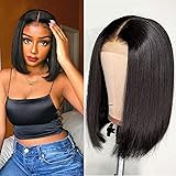Amazon Com Ali Grace Human Hair Short Bob Wigs Glueless Pre Plucked Bleached Knots Lace Closure Full Wig 10a Brazilian Virgin Natural Soft Hair For Black Women 150 Density With Baby Hair
