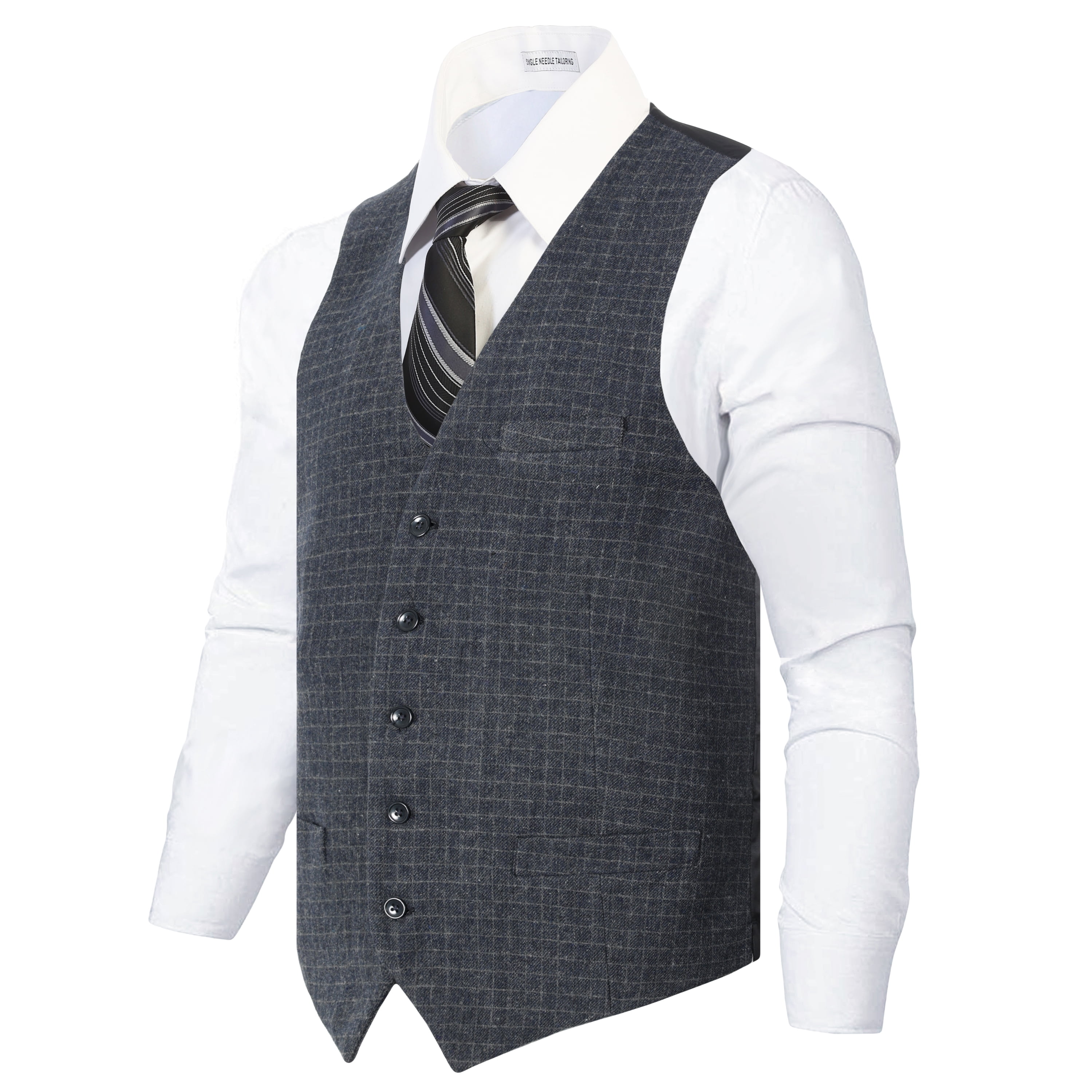 Woolen Tweed Suit Vest For Men Herringbone Slim Fit Premium Wool Blend Waistcoat Clothing Shoes Jewelry