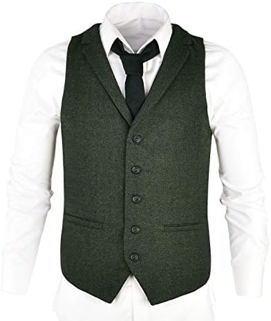 Amazon Com Mens Classic Wool Tweed Suit Vest Casual Sleeveless Jacket Herringbone Waistcoat For Tuxedos Army Green X Small Clothing Shoes Jewelry