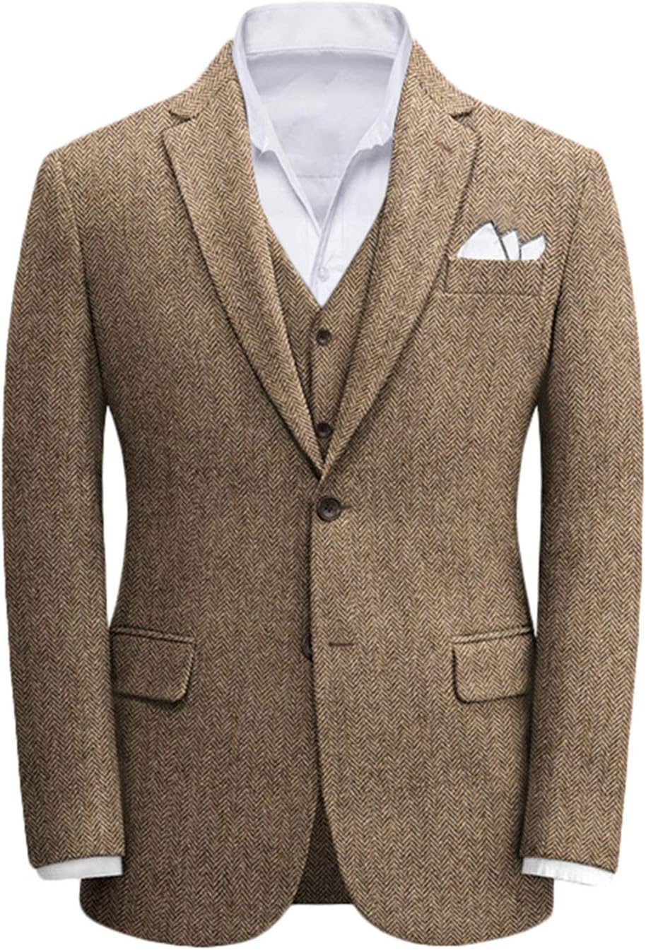 Wemaliyzd Vintage Men 3 Piece Tweed Suit Vest Pants Slim Fit Herringbone Outfit Set Brown 36r At Amazon Men S Clothing Store